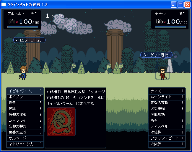 プレイヤーは10個のスキルをセットし、交互にスキルを使用して相手のHPを0にすれば勝ちです。